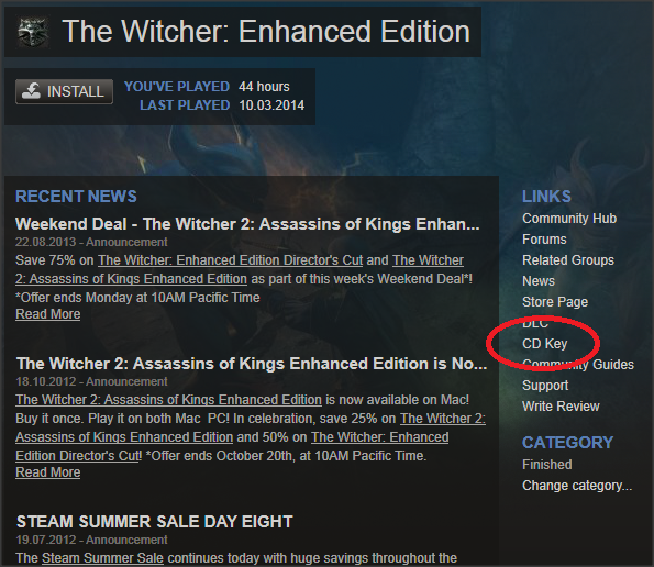 Hatte mir vor Kurzem auch nochmal beide Witcher beim Steam-Sale gekauft, weil ich einfach zu faul war die Retail zu installieren, alle Patches rauszusuchen etc. Hast du denn in deiner Link-Liste zum Spiel tatsächlich nicht den folgenden Eintrag: ?